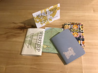 Mijn handgemaakte boekjes vul ik met duurzaam notitiepapier en de omslagen die ik gebruik, zijn van circulaire oorsprong zoals oud papier (verpakkingen, tijdschriften, behang, etiketten enz.), textiel en allerlei ander bijzonder materiaal.