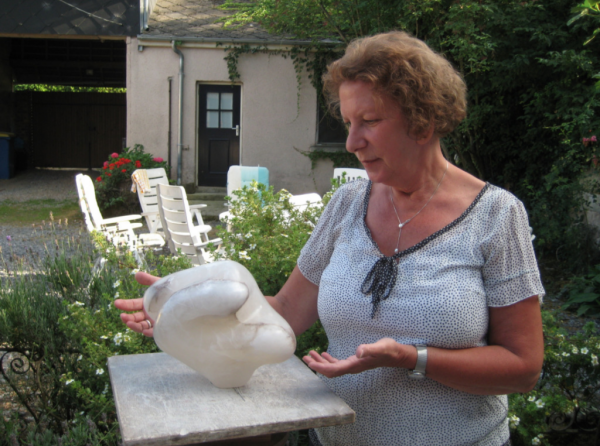 In mijn vrije tijd ben ik beeldhouwer en ik werk dan graag in marmer, Belgisch hardsteen, serpetijn en soms in speksteen. Iedere steen heeft zijn eigen, natuurlijke prachtige kleuren en aders. Allemaal zeer verassend als je je beeld aan het einde gaat polijsten.
