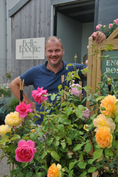 Hallo, ik ben Wouter de Vries, Aalsmeerse ondernemer in de rozen. Mijn bedrijf Belle Epoque is sinds een jaar weer terug op Aalsmeerse grond. In de jaren ’90 verwierf Belle Epoque al bekendheid in de rozenwereld, en nu bouwen we met ons gezin – mijn vrouw, onze kinderen en ik – verder aan deze bijzondere plek.