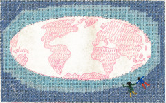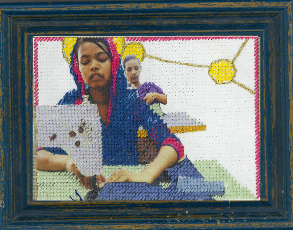 De laatste tijd werk ik veel met handarbeidtechnieken, zoals punniken, naaien en borduren, die nog een tijd geleden als oubollig werd gezien, gecombineerd met standpunten over bijvoorbeeld klimaatveranderingen, en uitbuiting van textielarbeidsters en onrecht.