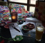 Ik ben een creatief mens en deze Geluksroute neem ik m'n haaknaald weer ter hand. Eerder maakten we door cocreatie een prachtig Gelukskleed. Als je zin hebt om ook een Afrikaanse bloem te haken of om zomaar te (leren) haken dan ben je van harte welkom. Elke keer weer verbaas ik me over de fijne gesprekken die dan spontaan ontstaan.