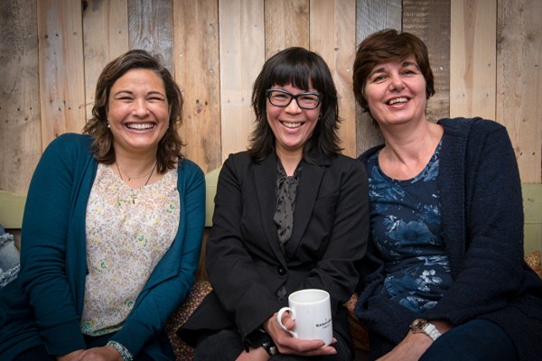 Drie enthousiaste vrouwen met een gedeelde passie; handwerken.